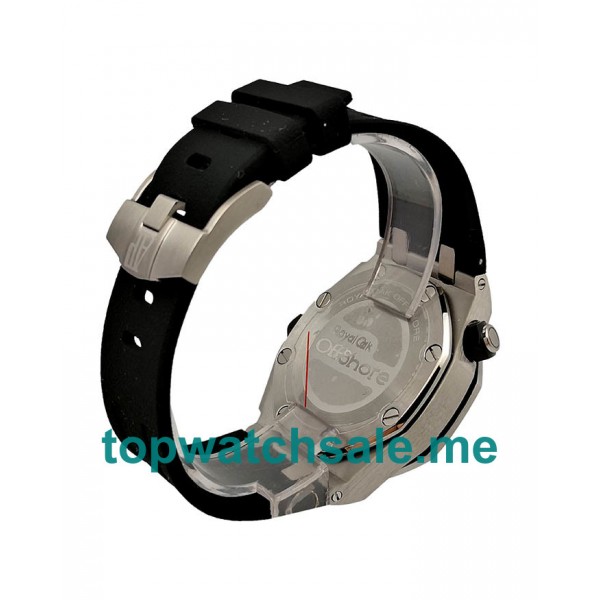 Perfect AAA Audemars Piguet Royal Oak Offshore replica watches are matched with black dials and black rubber straps, and the Swiss 1:1 fake watches are very sporty choices for men with 42mm cases.