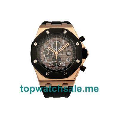Top Swiss made fake Audemars Piguet Royal Oak Offshore watches bring the luxury flavor with rose gold material, and the high quality replica watches are suitable for sporty and leisure dressing with rubber straps.