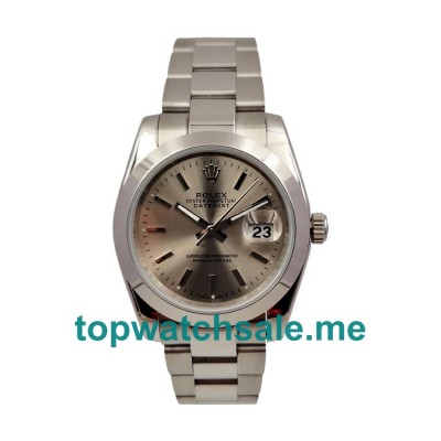 High quality replica Rolex Datejust watches are designed with 31mm in diameter for men and women, and the UK top fake watches are featured with gray dials.