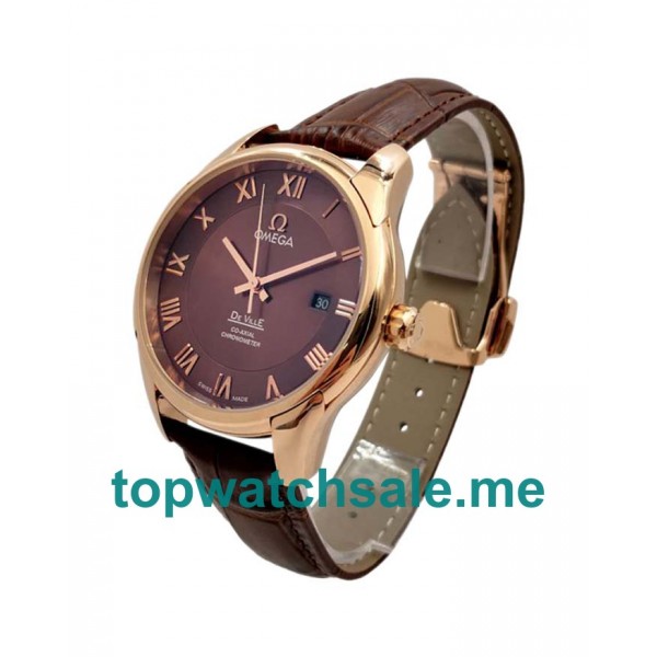Buy luxury replica Omega De Ville Hour Vision watches with brown dials and brown leather straps, and the AAA wholesale fake watches UK are created of rose gold cases.